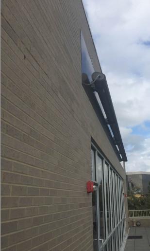 The owner requested a permenant covering over its employee outdoor seating area rather than their current use of table umbrellas. We found and designed a product that would give them the added shade when required.