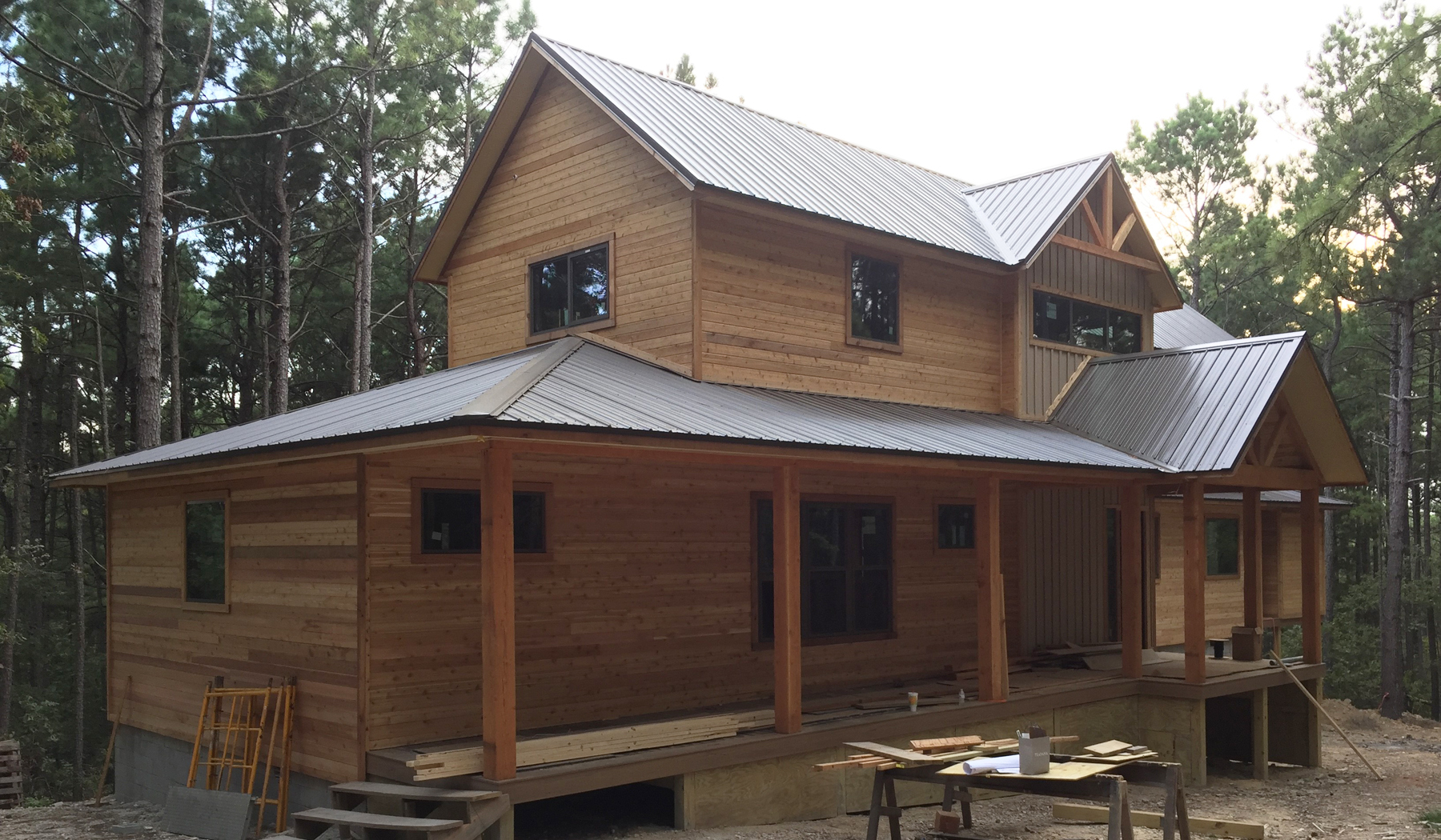 The owner wanted a place where her family and friends could go to the country and relax with all the amenities of a hotel. The design included bunk bed areas, reading nook, and an expansive living and kitchen area to accomodate large groups. There is even a large porch with a protected spa area and sitting areas to take in the beautiful natural surroundings. When not in use by the family it can be rented out as it is designed with areas only for the owner's use.