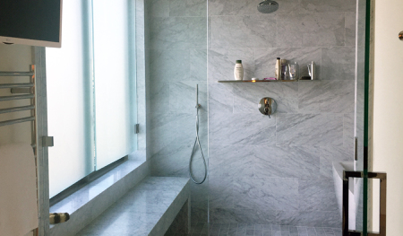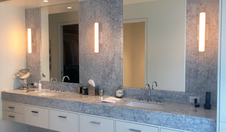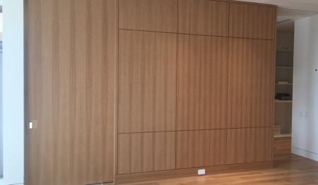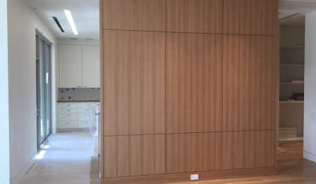 The condo designed is a 2 bedroom unit with an office retreat. The owner entertains quite a bit and required an elegant kitchen and bar that could be closed off from the living and dining area.